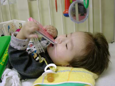 中に入っていくと吸入の最中だった。