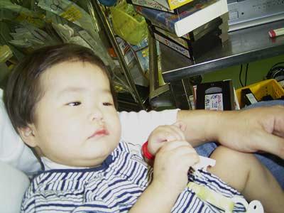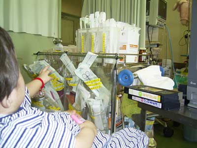 それより未だ医療器具が気になる様子。 お前将来外科医になるの? |