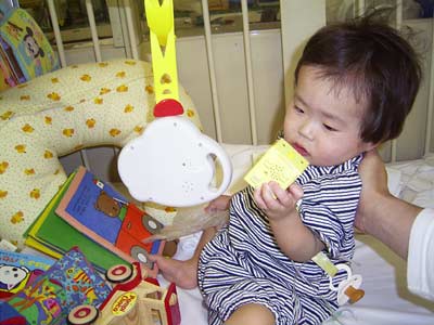 さすがはオモチャパワー、次第にちゃんと座るようになりました。