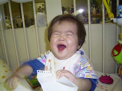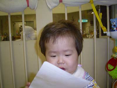 かはははは!これ、おもしれー! ぶんぶん振ったり、裏表くるくる回したり。 何が面白いのか、大喜び! テンションも最高潮!! |
