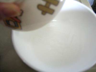 これが重湯です。 本当にとぎ汁のような薄い汁です。 しかしこの一杯が、私たちにとって大きな一歩なのです。 正直この重湯は感動でした。 |