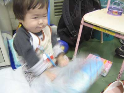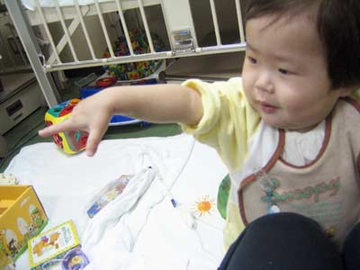 すぐに経口栄養。オムツを替えると元気に遊び始める。