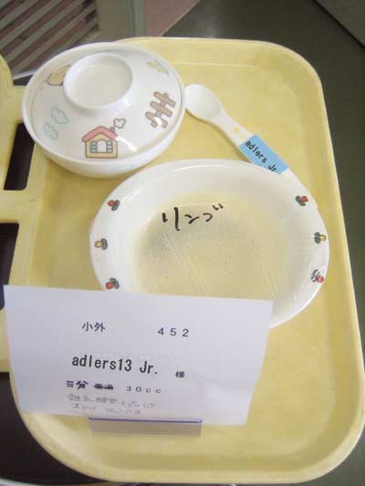 その後三分粥に・・・何とりんごのすりおろしがついてきました。