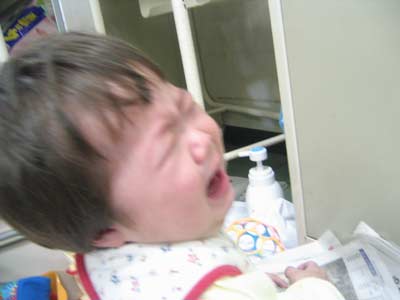 起こして経口栄養。一気に飲んでやっと落ち着いたよう。