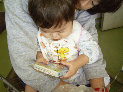 ちょっと休憩していたら1歳7ヶ月の女の子がママと一緒に遊びに来る。