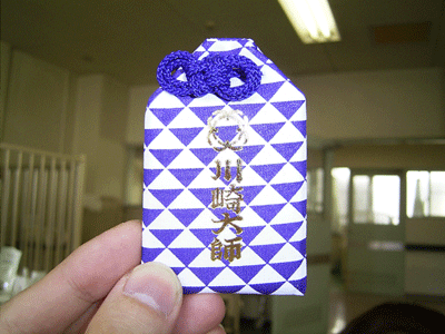 今日のもう一つのお土産が、このお守りです。 子供はこのようなウロコ模様のお守りが良いんだとか。 |