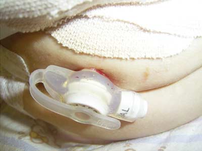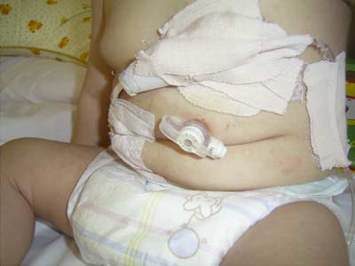 胃ロウのガーゼも取り替えます。 ガーゼを取り去った時の写真です。 |