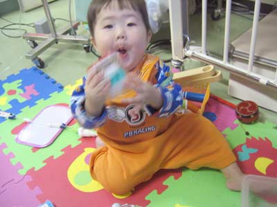 その後マットをしいて消灯台のオモチャで遊ぶ。