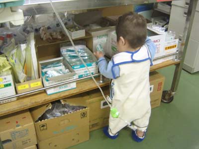 また靴を履かして今度はナースステーションに。
