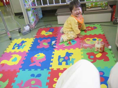 バッテリーが切れたのでマットを敷いて病室で遊ぶ。