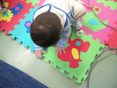 とにかくお部屋に戻って手を拭いて、マットを出して遊び事に。