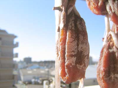 実家からもらった渋柿が、見事に粉を吹きました。 |