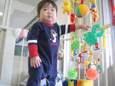 ナースステーションにはまだ入れないので一人で遊んでいたよう。