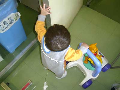 戸の開閉?が今日のお気に入り。 開けたり閉めたり、そのうち指挟むぞ。 |