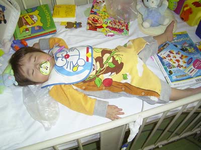 6人くらいに囲まれても、我関せず。 病院育ちだから? |