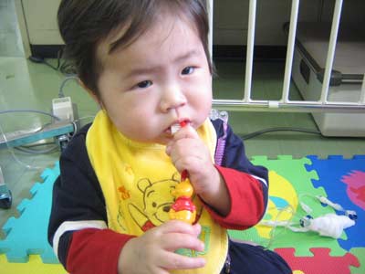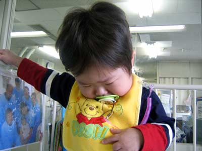 その後プーさんの室内履きでナースステーションへ。