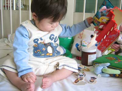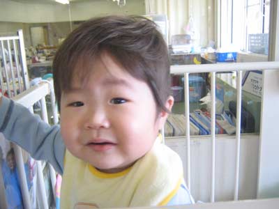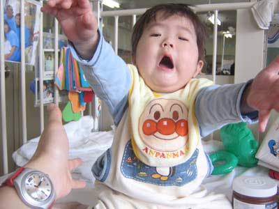 ベットの上からナースステーションをじーっと見ている我が子。