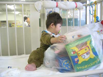 ちょっと抱っこして靴を履かせ病室を歩かせる。