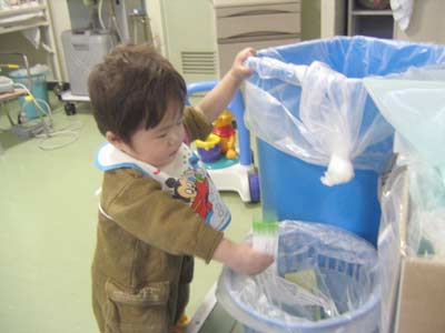 「ゴミは・・・分別・・・」っと。 ペンが逆やぞ。 |