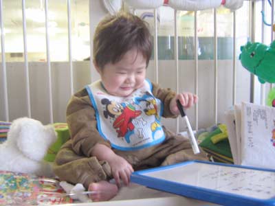 ベットの上で遊ばせたが、柵を揺すってやんちゃだったよう。