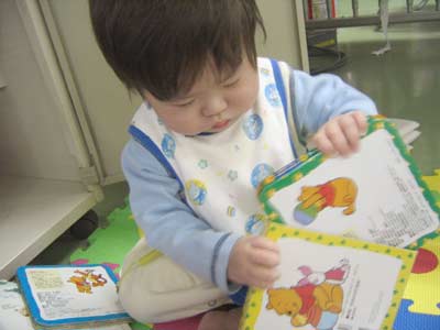 よいしょっと・・・ お?しまえるの? 最近は体温計もケースに入れられるようになったし、おもちゃも種類毎に分けて片づけます。 |