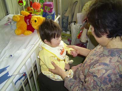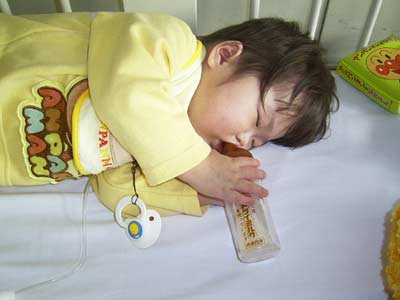 ババが子とルートを確保し、私は点滴台。