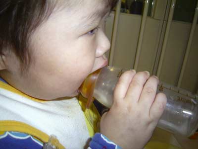 すぐにエレが運ばれてきて、息子はごろりと寝ころび一気のみ。