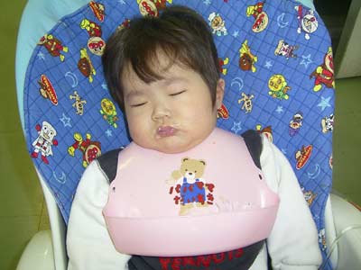 しばらくすると諦めたかのように後ろにふんぞり返り、あ〜んと口をあけるように。