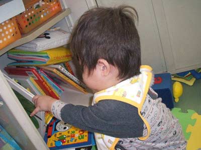 ベットの上での遊びでは、我々を全く無視して一人で本とオモチャであそんでいました。