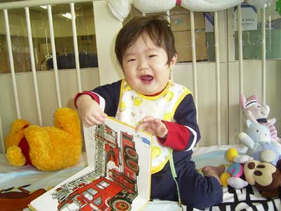 絵本見開き1ページにつき、一度だけ小さく口を開く。