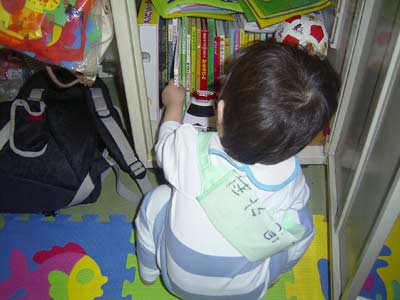 息子はなかなか棚から離れようとしない。