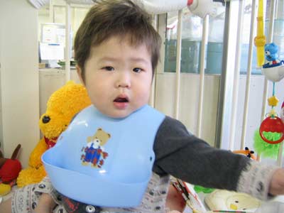 部屋に戻ると3ヶ月の口唇裂手術の赤ちゃんが。