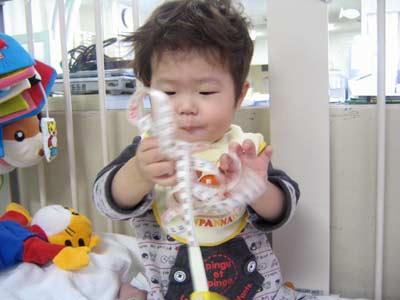 今日は11時に病室へ。トットッタッタに座って大はしゃぎ。