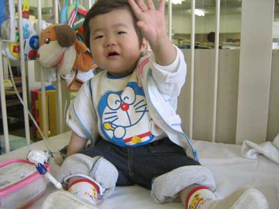 病室へ戻ると我がもの顔で笑顔で遊んでました。内弁慶な奴です。