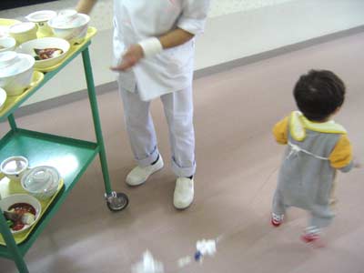 食事を運んでくるワゴンで遊んだり、大きな声をあげて楽しそう。