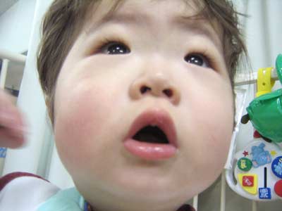 絵本を読んだりしていたが、時々咳き込みおしゃぶりが飛び出してしまう。