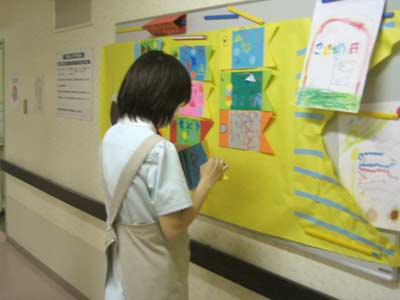 今日プレイルームでは鯉のぼりを作成したそうで、作品を飾っていた。