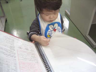 その後もホワイトボードでマグネット遊びや本をめくって遊んでいました。