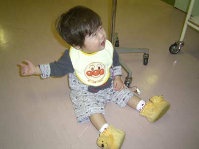 靴を履かせると喜ぶが、何故か片方履いたところでイヤイヤと。
