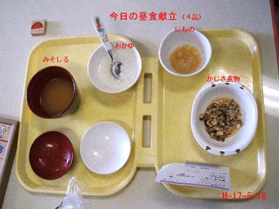 昼食は4品、おかゆ、煮物(何の煮物か記入無く不明)、