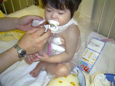 ビニールにガーゼで完全防備。 ルートは何としても守ります。 |
