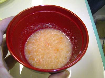 ちょっと残った分は、遊び食べ。 でもこれで完食です。 でも以前のように、 いいなりになってモノを渡すことはしません。 自然食べ、ですかね。 |