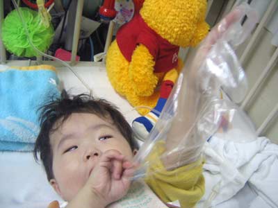 しゅ〜と自分で吸入してるのに・・・ なぜだかとってもイヤそうな顔。 |