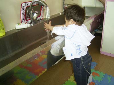 一人で手が洗えるように。 背、伸びたな。 |