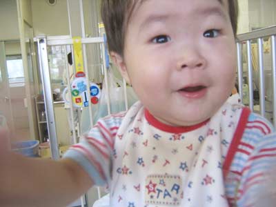 ナースステーションの机の上からバイバイっと大きな声。