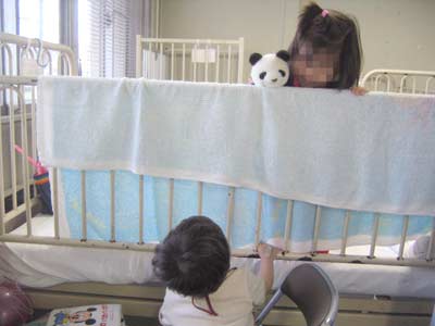 子はベットで隣の女の子とママに遊んでもらっていた。(写真)