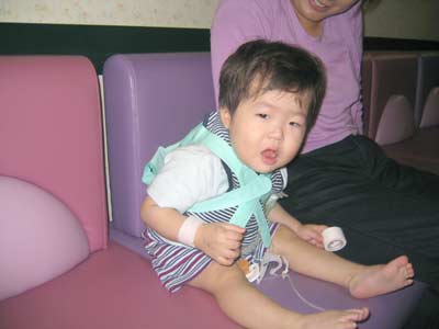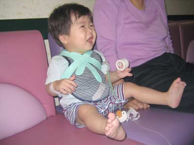 途中で学生さんに孫の熱を測ってもらうと、なんと38.3度ありました。