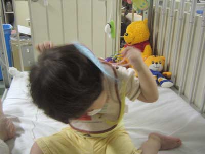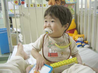同室のお母さん達と話していると、私の膝に甘えて頭を乗せてきます。
