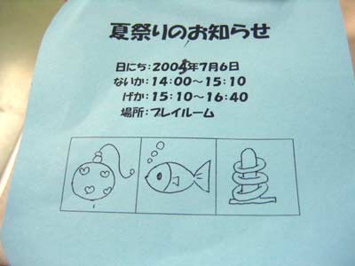 遊んでいると明日の夏祭り(七夕)のお誘い。