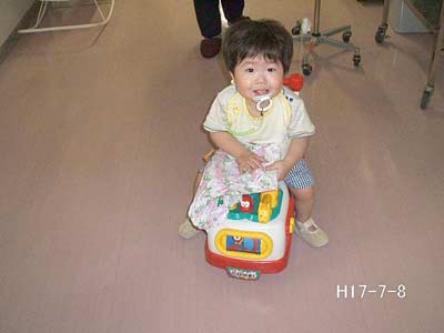 再び靴を履かせ、歩きに出ました。廊下を行ったり来たり何往復もしました。